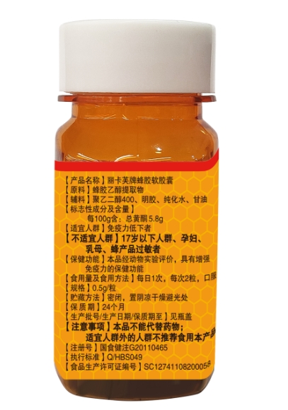 【產(chǎn)品名稱】:麗卡芙牌蜂膠軟膠囊 6瓶裝(蜂中珍品)