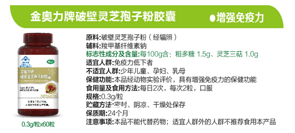 【產(chǎn)品名稱】:金奧力牌破壁靈芝孢子粉膠囊